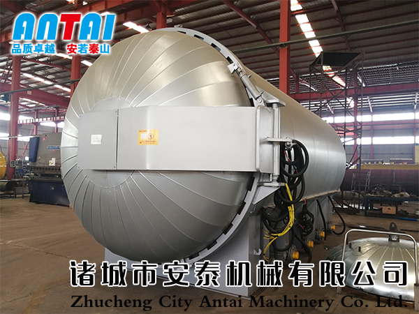 臥式蒸汽硫化罐,采用蒸汽作為工作介質(zhì),通過自動(dòng)控制的方式,完成整個(gè)硫化過程,根據(jù)國(guó)內(nèi)外客戶使用反饋,其硫化效果明顯好于其他方式,得到了眾多橡膠生產(chǎn)廠家的一致認(rèn)可。蒸汽由罐底進(jìn)入,在罐底設(shè)置蒸汽進(jìn)口由自動(dòng)閥門控制,蒸汽擴(kuò)散管豎向在罐底排列,擴(kuò)散管中小口(3mm、4mm、5mm)按一定規(guī)則和角度彌補(bǔ)排列,確保蒸汽進(jìn)入到罐內(nèi)后溫度均勻向四周擴(kuò)散,防止蒸汽擴(kuò)散不均造成的產(chǎn)品質(zhì)量不同。設(shè)定工作程序后,控制系統(tǒng)自動(dòng)進(jìn)行升溫、保溫、硫化等工作,硫化結(jié)束后發(fā)出聲光提示并停止工作。